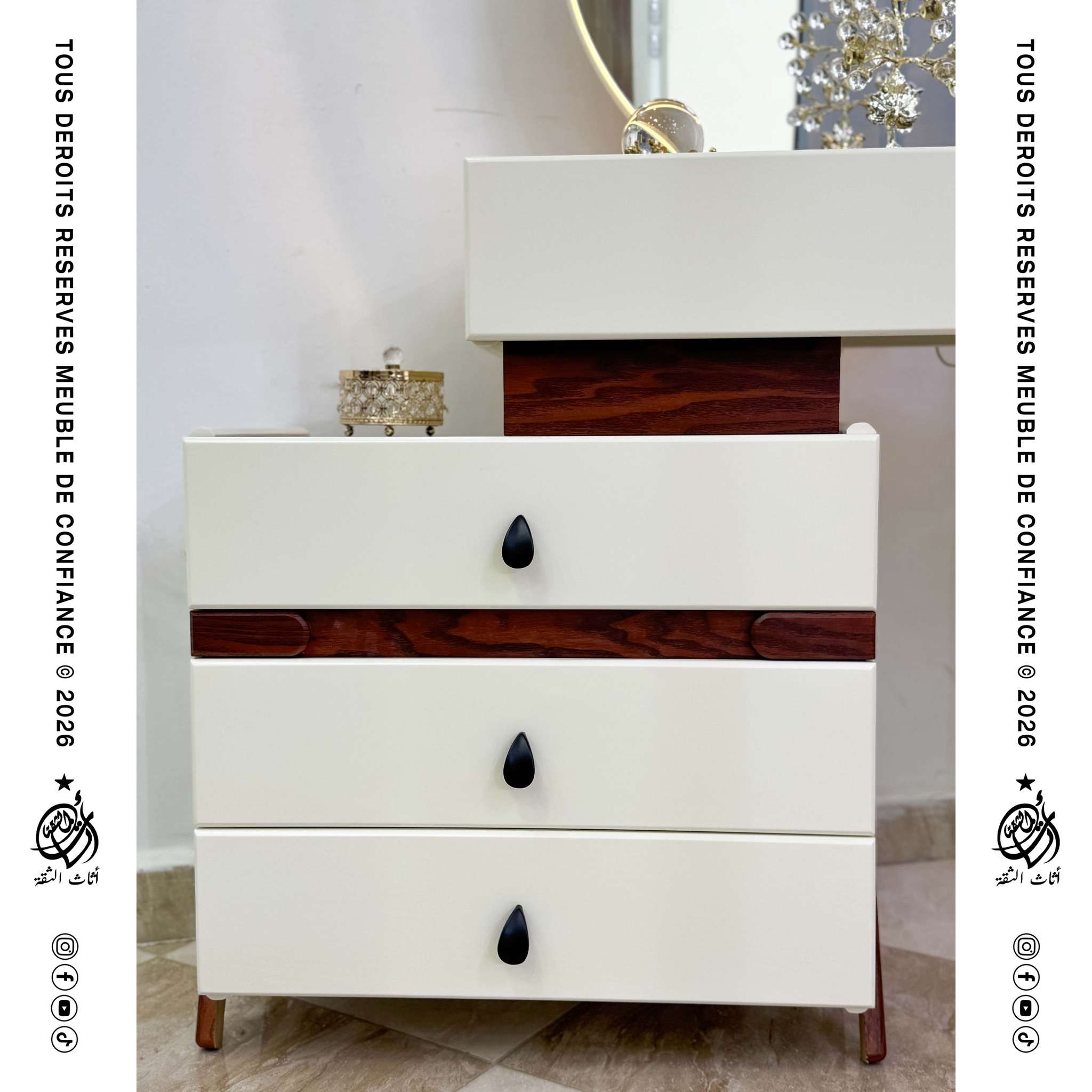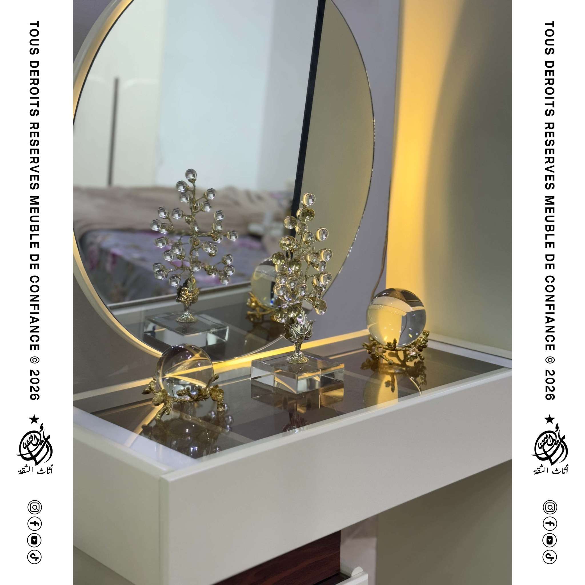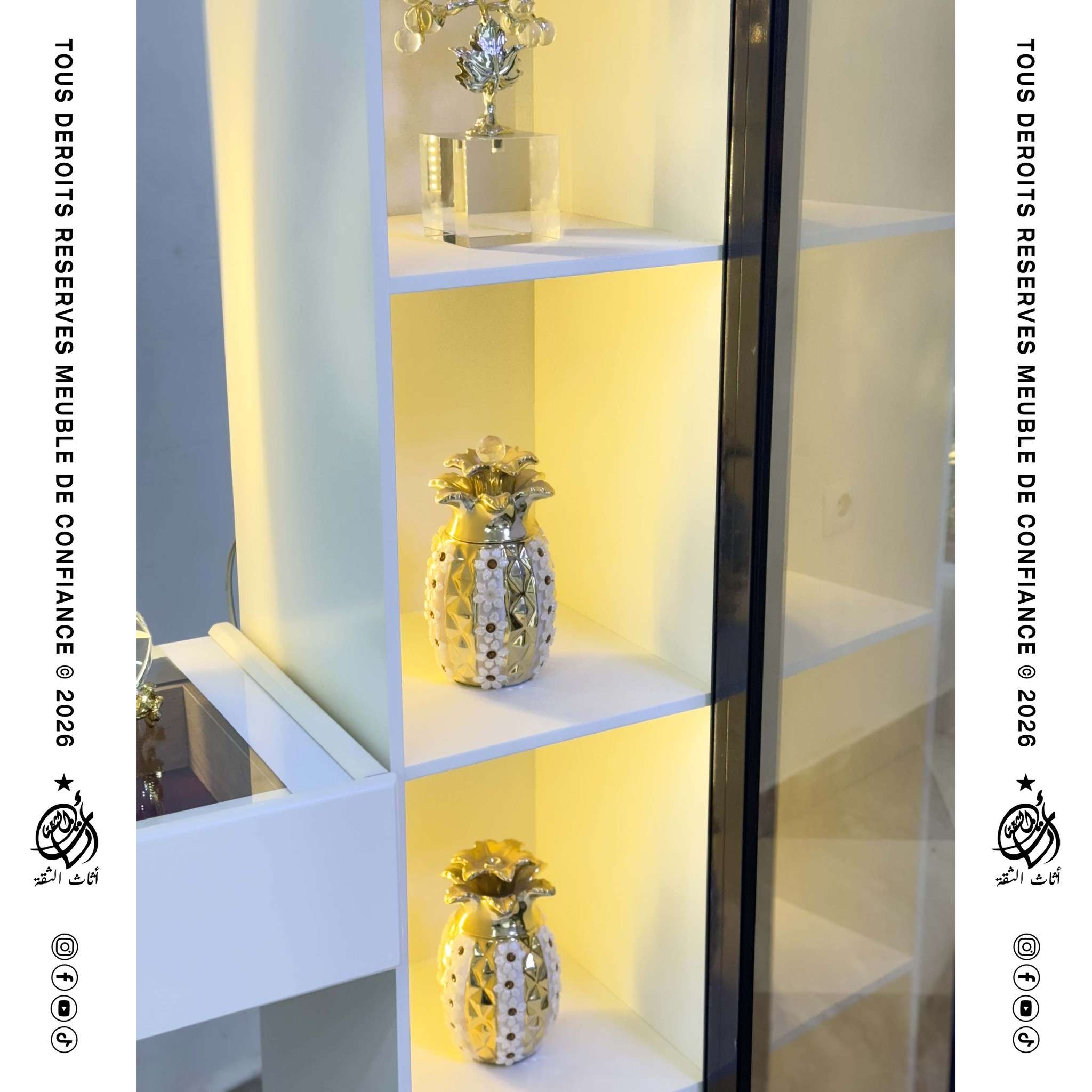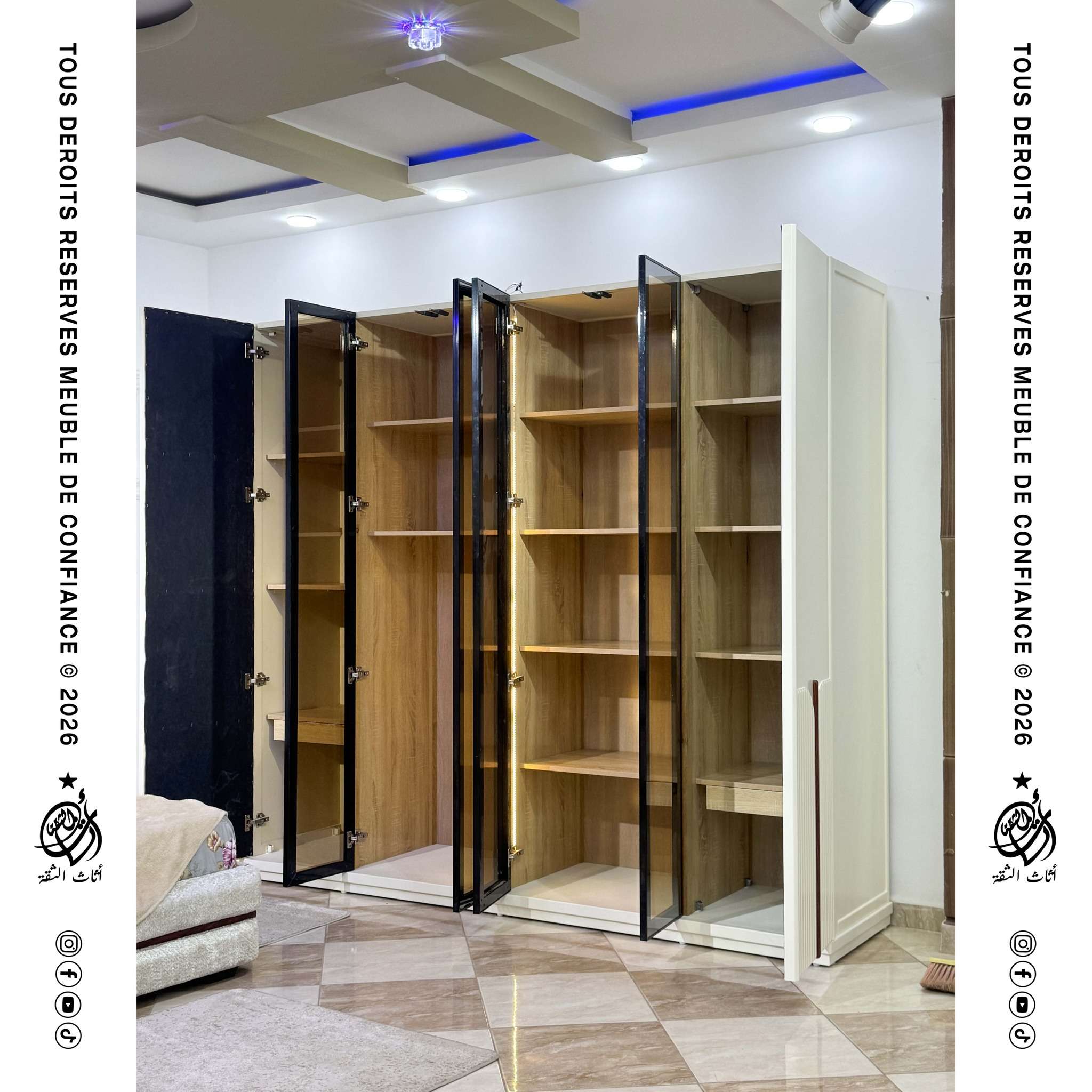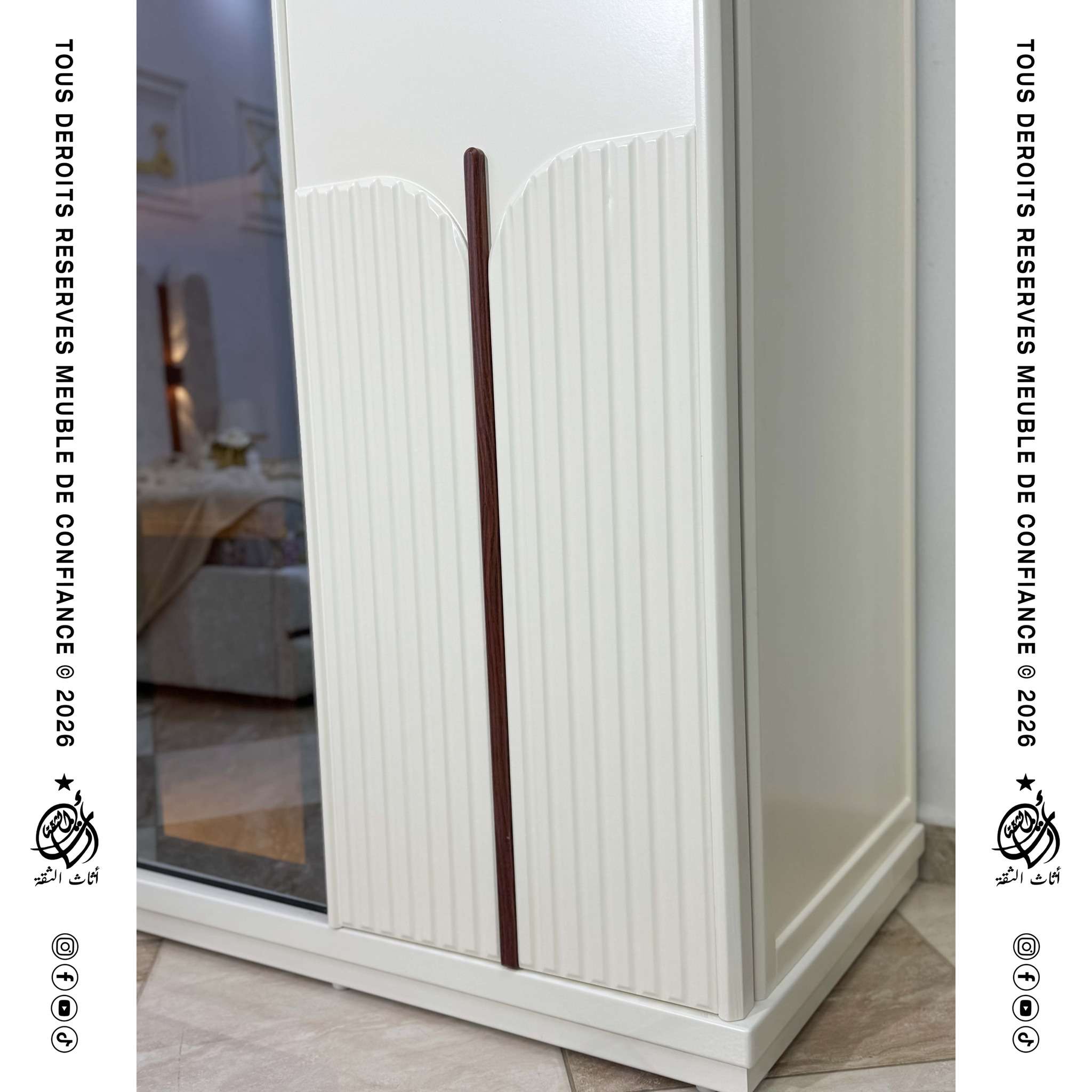 Damas Pro – Élégance et confort Apportez une touche de raffinement à votre intérieur avec cette chambre à coucher moderne au design élégant et harmonieux. Composée d’un lit avec tête capitonnée, de tables de chevet assorties, d’une coiffeuse avec miroir et d’une grande armoire avec portes vitrées, cette collection allie esthétique contemporaine et fonctionnalité. La tête de lit rembourrée offre un confort optimal tout en ajoutant une note luxueuse à l’ensemble. Les finitions soignées, les détails décoratifs muraux et l’éclairage intégré créent une ambiance chaleureuse et apaisante, idéale pour vos moments de repos. L’armoire spacieuse avec vitrines apporte une solution de rangement pratique tout en mettant en valeur vos effets personnels. La coiffeuse élégante complète parfaitement l’ensemble pour un espace à la fois pratique et sophistiqué. Caractéristiques : Design moderne et épuré Lit avec tête capitonnée confortable Armoire grande capacité avec portes vitrées Coiffeuse avec miroir intégré Finitions haut de gamme Éclairage décoratif intégré Transformez votre chambre en un espace chic, confortable et parfaitement organisé.